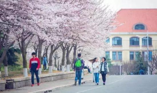 从滨海大道校门进入海大崂山校区后,步行不到5分钟就可来到海源中路。樱花盛开时节远远望去,这条道路上就像覆盖了一条粉色的锦被。