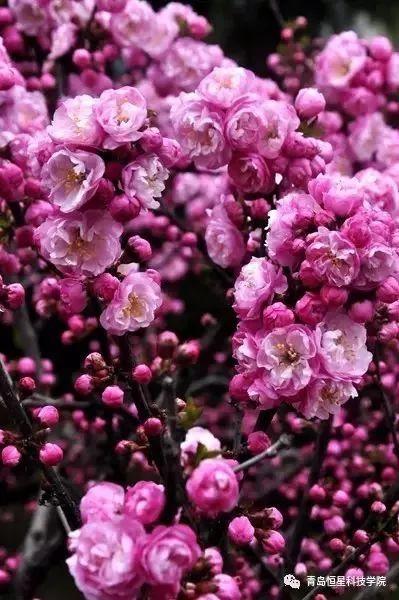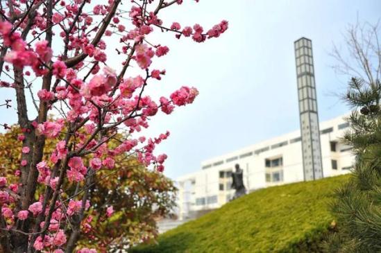 教学区附近的绿地里,随处可见盛放的白梅、红梅和杏花。