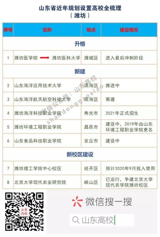 与青岛市一样,潍坊市也是在“十三五”时期出台意见,要求各县区增加高等教育机构数量。