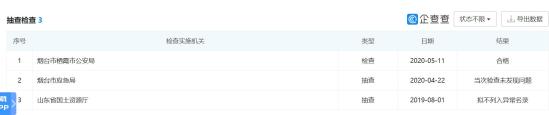 此外,近两年,山东省国土资源厅、烟台市应急管理局和栖霞市公安局先后对五彩龙投资进行抽查,检查结果分别为“拟不列入异常名录”“当次检查未发现问题”和“合格”。