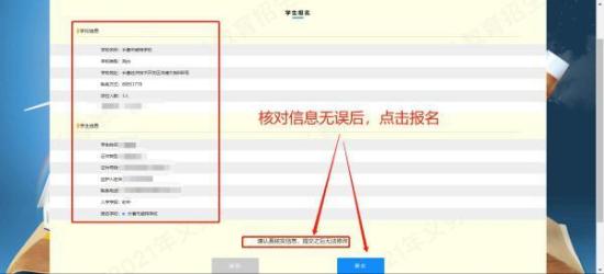 (2)在报名页面,仔细核对填写信息,在确认无误情况下,点击“报名”按钮,完成学生报名操作