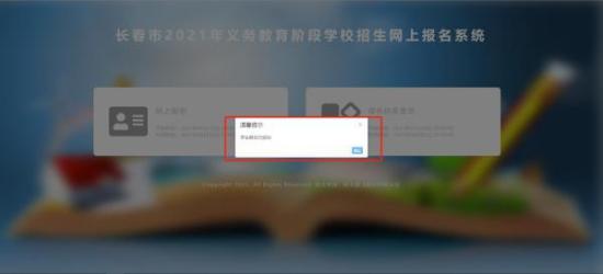打开浏览器(推荐使用谷歌 Chrome、IE、火狐,Microsoft Edge,360极速),输入教育局网站地址(http://jyj.changchun.gov.cn),进入“长春市2021年义务教育阶段学校招生网上报名系统”,主页面如下图所示: