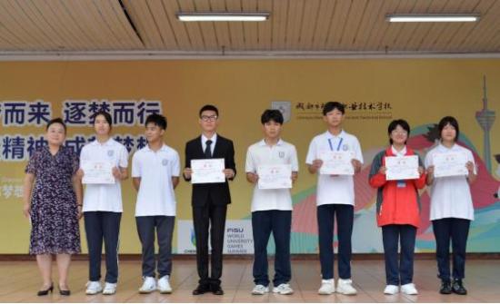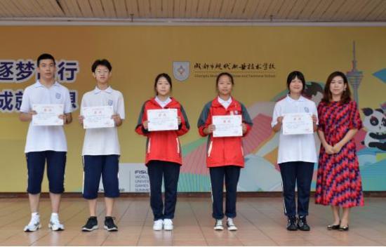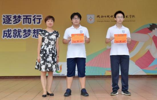 在追逐自己的青春梦中,学校也涌现了一批优秀的逐梦青年,他们是优秀的文化之星和技能之星,学校分管教学校长罗辑老师和分管招生校长黄强老师,成都市特级教师邓涛、蔡慧分别为谢雨婷、刘雨婷等获奖同学颁奖。