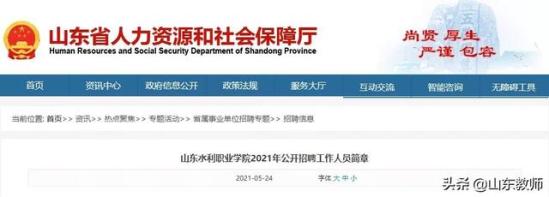 通过省人力资源和社会保障厅网站(http://hrss.shandong.gov.cn)、省水利厅网站(http://wr.shandong.gov.cn)、山东高校毕业生就业信息网(http://www.sdgxbys.cn)和山东水利职业学院网站(http://www.sdwcvc.cn)按规定面向社会发布招聘信息。