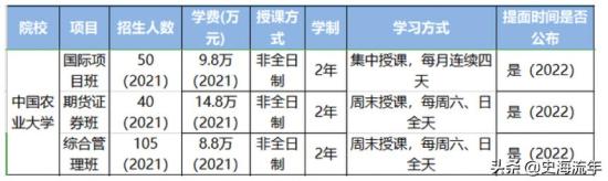 脱产班、集中班、金融班、综合班、科技创新创业班、人工智能与应用班,每年学费约9.8万元至25.8万元之间。两年总费用约为25万元至56万元之间。