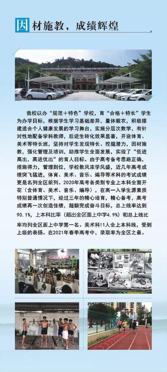 今年计划招收400名高一新生,开设8个教学班,其中设置2个创新班,服务报读我校的高分学生,把创新班办在我们地都的家门口,方便广大学生和家长。