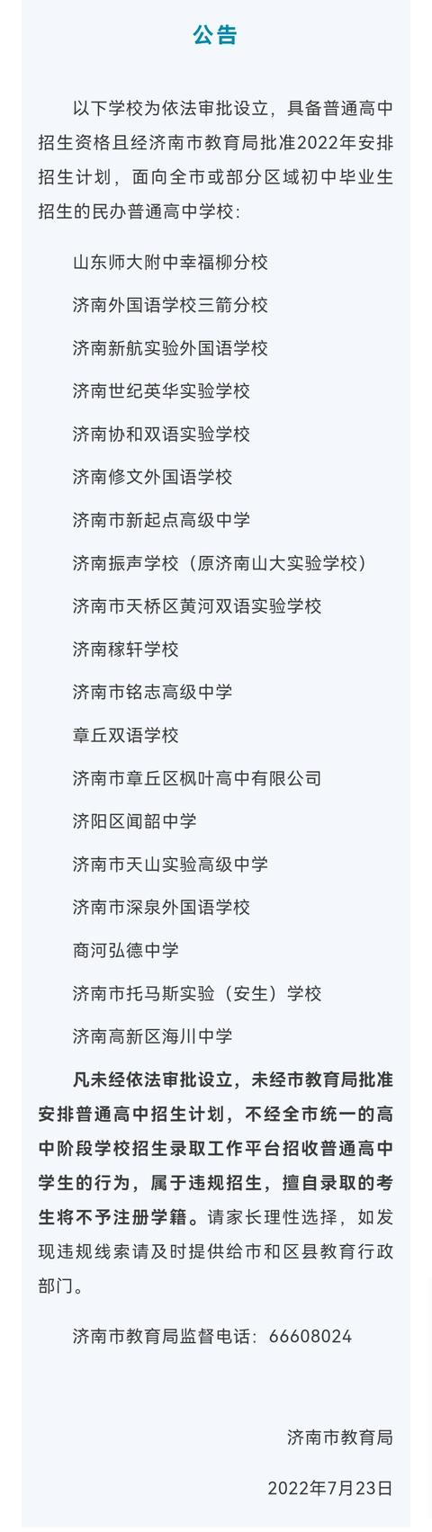 民办高中会被取消吗(东莞民办高中有哪些) 来源:中国职校招生网 时间:2022-07-27 19:33:38 齐鲁网·闪电新闻7月23日讯记者从济南市教育局了解到,2022年济南市19所具有招生资质民办普通高中名单公布。闪电新闻记者 段嘉琪 报道