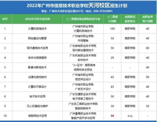 2022年广州市信息技术职业学校三二分段专业招生计划。(部分)