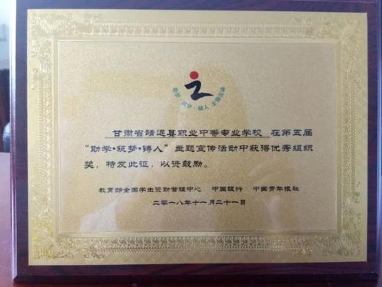 全国第五届“助学筑梦铸人”主题宣传活动“优秀组织奖”
