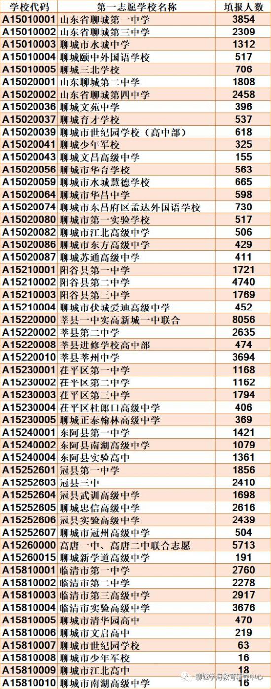 2022聊城中考报名最终数据截止2022年5月20日24:00普通高中报考情况