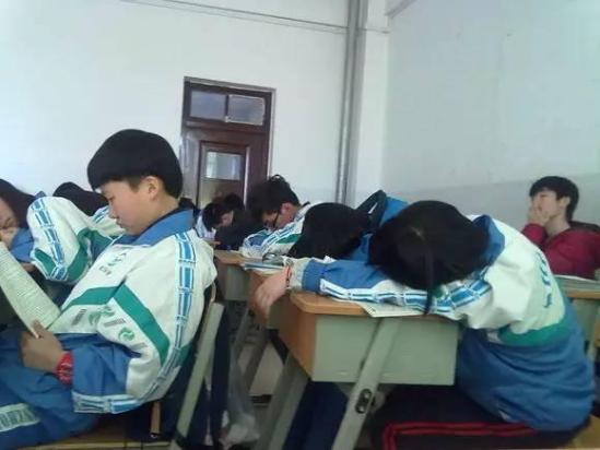 ▼教室里同学们趴在桌子上午睡,桌子上的笔记还没有合上,后面同学传的纸条还夹在课本里……