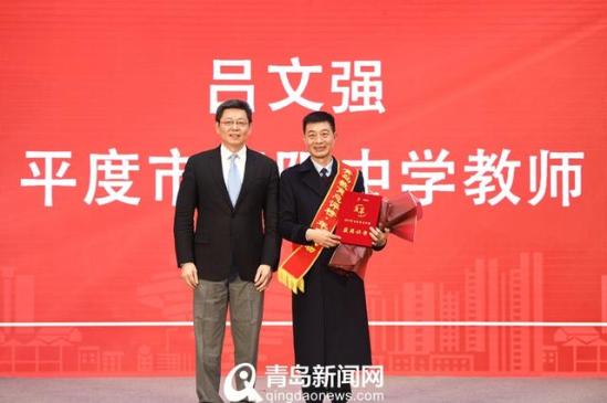 2020年1月13日,一场青岛教育界的盛会在上合青岛峰会的举办地隆重举行。作为2019青岛教育总评榜的特邀嘉宾,青岛市委常委、宣传部部长、市委教育工委书记孙立杰出席了当天的颁奖典礼。作为当天的压轴大奖,已经61岁的吕文强老师,从孙部长的手中接过了“2019青岛教育总评榜年度风云人物”的证书。这一刻,这位来自平度朝阳中学的退休教师,成了全青岛教育人的榜样。