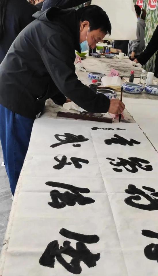 在军盾拓展基地,书法家们饱含激情奋笔挥毫,把对新时代新生活的赞美,对参观校园的所感所受,对学校发展的美好祝福,对学生学业进步的殷切期待都以书法作品的形式进行展现。参加活动的14位书法家现场创作了书法作品50余幅,他们的创作热情也感染了现场的金盾司法学校师生。