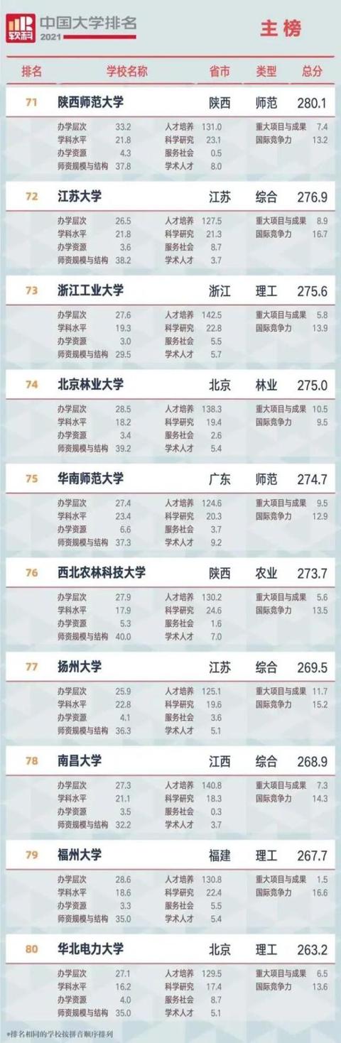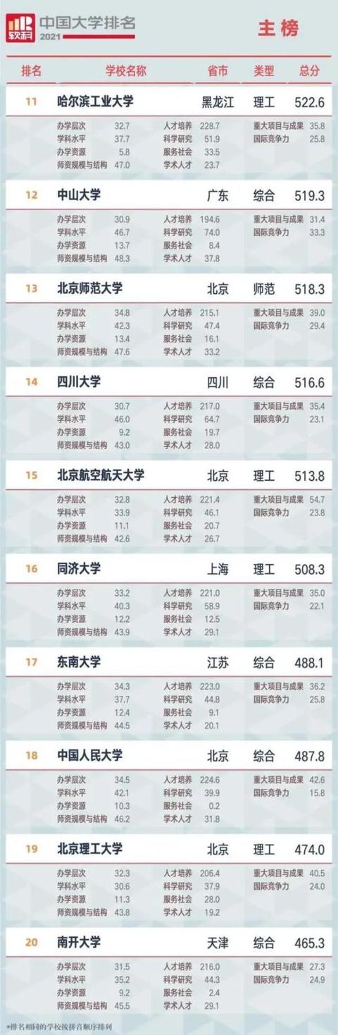 “2021软科中国大学排名”除了设置了1个主榜(综合性大学排名)外,还有设置了6个单科性大学排名、3个非公办大学排名,以及艺术类高校名单等。