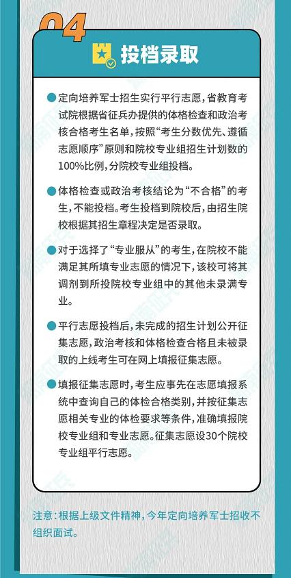 近期,教育部、军委政治工作部、军委国防动员部下发《关于做好2022年招收定向培养军士工作的通知》,2022年定向培养军士招收工作各地正式启动!