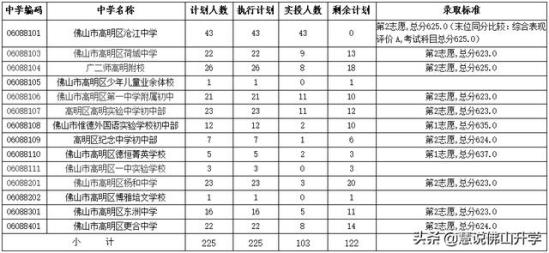 高明区第一中学名额分配到各初中学校录取标准