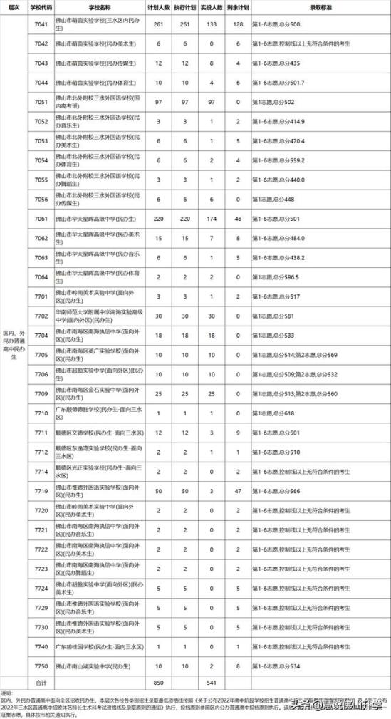 1.佛山市南海区2022年高中阶段学校招生提前批、第一批、第二批控制分数线及录取标准
