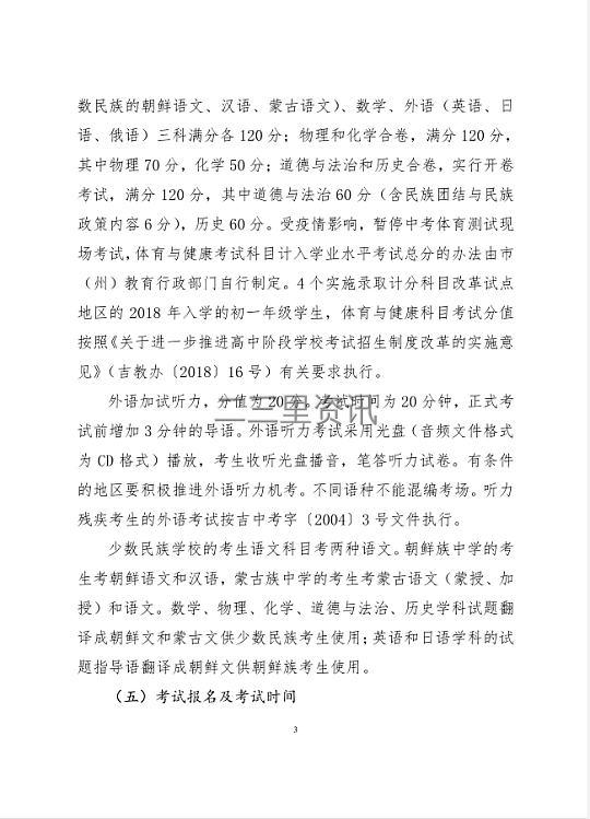 吉林中考科目及各科分数(吉林省中考分数构成)