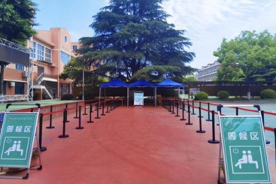 上海市嘉定一中严格实施校园网格化分类管理,将学校空间合理划分为多个教学区及其他功能区域,同时设置11个核酸采样点,确保1.5小时内完成校内所有人员采样。