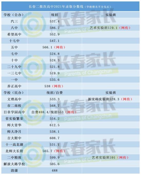 不过在分析之前,咱们先来看看2021年长春各个高中的录取分数线!