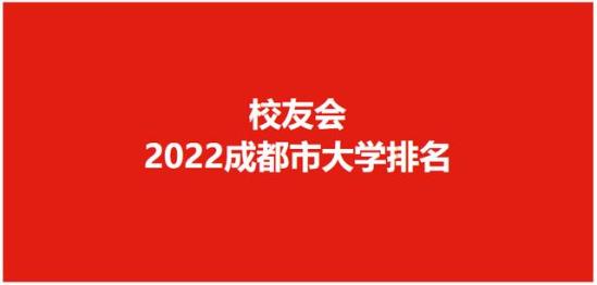 在最新校友会2022中国大学排名中, 四川大学综合实力最强,办学水平最高,最具竞争力,全国排名第19名,位居2022成都市大学排名第一。电子科技大学高居全国第30名,位列第2名。西南交通大学排行全国第50名,名列第3名。西南财经大学位列全国第62名,名列第4名。西南石油大学排行全国第109名,名列第5名。成都理工大学排名全国第138名,排行第6名。四川师范大学高居全国第144名,位居第7名。西南民族大学位列全国第162名,排行第8名。成都中医药大学名列全国第209名,排名第9名。西华大学排名全国第256名,名列第10名。