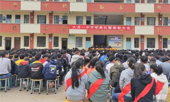 3月1日,大井镇第一中学举行2021年春季学期开学典礼暨2020年秋季学期表彰大会,全体师生参加。
