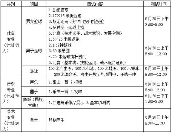 五、艺体特长生专业测试安排