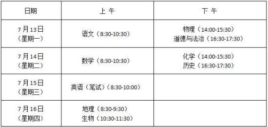 七、潍坊市初中学业水平考试文化课科目考试时间安排