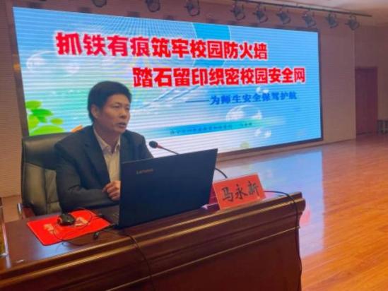 马永新从当前学校和学生安全管理的特点、面临的新形势引入,结合各方面的校园安全事故警示案例,深入浅出,通俗易懂。提醒全体老师要守牢校园安全底线,在思想上“绷紧弦”,状态上“拉满弓”,工作中“射硬箭”,把安全生产工作做得细些细些再细些。以最坚决的态度、最有力的举措、最强硬的作风,一米一米地打通、一段一段地推进校园安全工作的“最后一公里”,将安全落实到“神经末梢”。