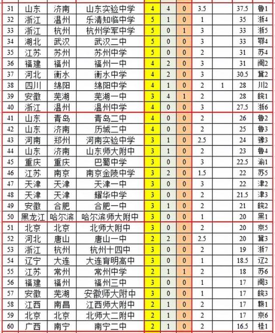8 | 湖南 | 湖师大附中 | 32 | 4 | 缺信息 |