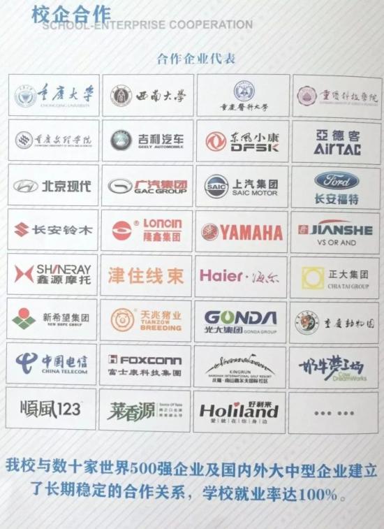 学生到校即签订“就业安置协议”,保证就业。我校开设有适应市场经济,横跨第一、二、三产业的专业提供给学生选择。主要就业去向在我国经济发达地区,如重庆、北京、上海、苏州、深圳等大型名优企业、合资企业、跨国公司和事业单位等。