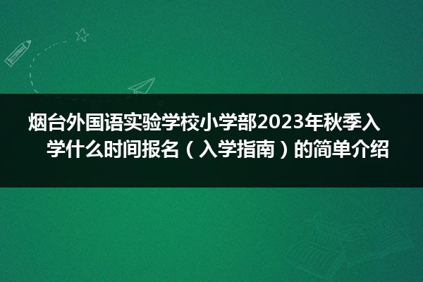 烟台外国语实验学校小学部2023年秋季入学什么时间报名(入学指南)的简单介绍