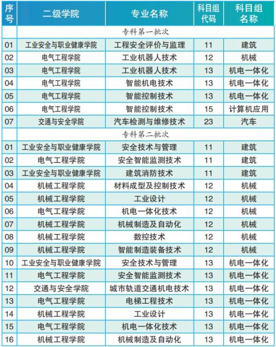 1. 体检要求:符合《普通高等学校招生体检工作指导意见》要求。必须参加高校招生统一体检,并符合教育部相关专业的身体要求。安全技术与管理、电梯工程技术、室内艺术设计、安全智能监测技术、智能安防运营管理、应急救援技术等专业要求色觉正常,无色盲色弱。城市轨道交通运营管理、婴幼儿托育服务与管理管理专业要求无色盲色弱,符合专业要求。提醒:根据相关专业培养、实习及就业的实际情况和安全要求,报考前请一定考虑相关专业对身体条件的要求。机械制造类普通专业身体符合实习、就业要求,消防工程技术、应急救援技术、电梯工程技术仅限男性报考。新生入学后,学校按规定进行体格复查和招生条件复查,不符合专业录取条件者,根据学院规定转入其它专业或取消其入学资格。