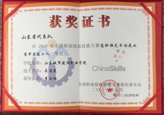 自2011年,本专业在全国住房与城乡规划土建类教育教学指导委员会建筑设计类优秀设计大赛、山东省高职园林景观设计与施工技能大赛中获一、二、三等奖共计多项。专业教师于2014和2018年获分别获山东省教学成果奖三等奖、二等奖两项。教师参与科研课题、论文比赛获奖多项。2019年学生参加全国职业院校技能大赛高职组艺术插花比赛获得三等奖(山东省第一名)。