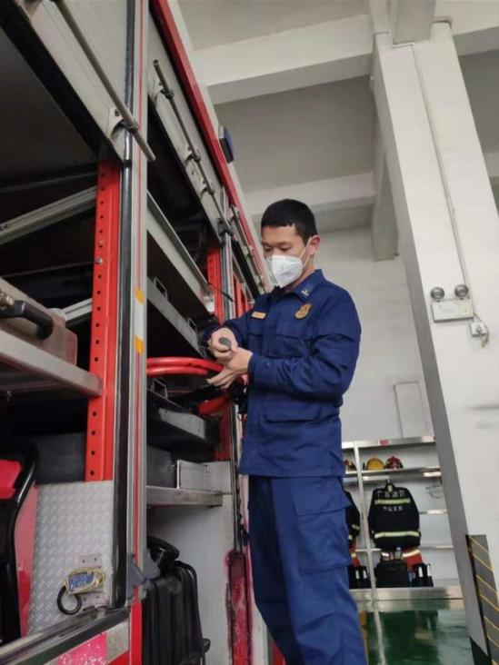 作为古镇消防救援大队疫情防治小组的成员,他每天需对单位的防治药品和器材情况进行全面摸查统计,实时掌握储备情况。古镇消防救援大队下辖一个国家队和两个政府专职消防队。梁泽需每天代表大队对辖区三个消防队进行检查,对所有人员的体温、落实防疫措施等进行督查,并实时上报大队及支队。三个中队不在同一区域,来回驾驶路程近2个小时,但在这种防疫关键时刻,他觉得一切都是值得的。