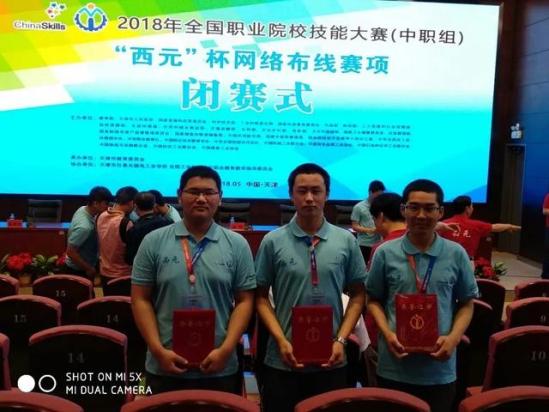 2018年丁想和、高志勇、刘晓波获得中职组网络布线赛项团体国赛银牌