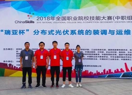 2018年张家豪、宋明磊、丁明宇获得中职组“分布式”光伏系统的装调与运维赛项团体国赛银牌
