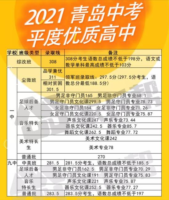 即墨区共有三所优质公办普通高中,面向即墨区招生。其中,优质高中电脑派位录取分数线为290分。