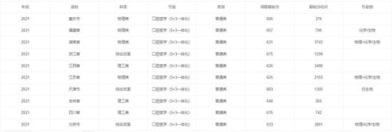 三、四川大学2021年口腔医学专业在各省(市)的录取分数线