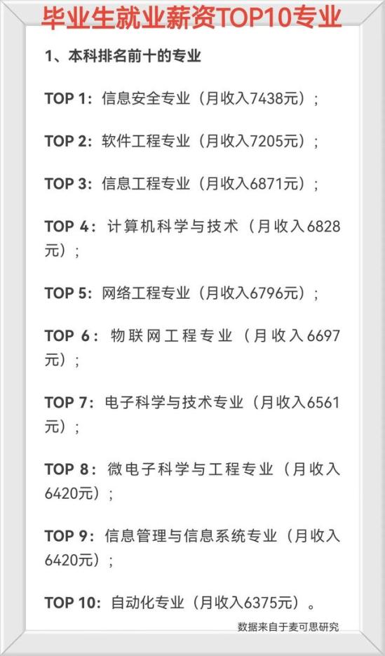 详情如下:(薪资数据来源于麦可思)