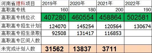 纵观高职高专批的历史录取数据,相对一本二本波动较大,且较多高校同位分有走低趋势,显示河南考生就读专科高校的意愿趋冷。另外,近三年来,既使征集志愿,完不成招生计划的专科高校依然不少,但纵向看,这一趋势在收窄,可以看到,一方面高校的招生计划在相应调整减少,另一方面,接受现实去学一门职业技术的观念,在这两年逐渐被大多低分考生接受。