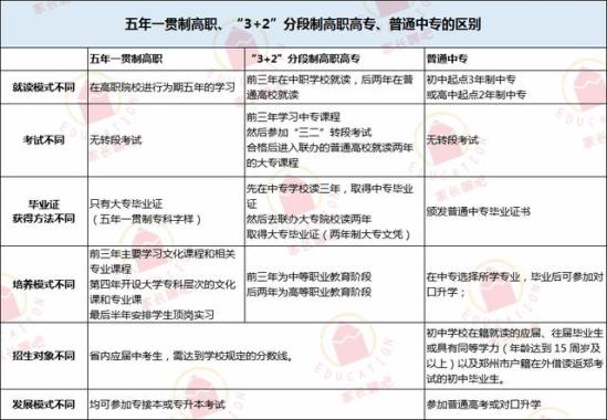 普通中专分为三类:五年一贯制高职、“3 2”分段制高职高专、普通中专,都是初中生志愿填报的选择,具体有什么区别?