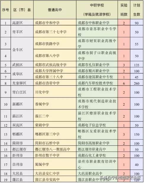 2、面向中心城区范围招生人数。各区大多学校除开校内指标人数,都还有一定名额面向中心城区招生。少部分学校,例如双中实验、嘉郫、三原外国语的校内指标已经占用完了面向中心城区招生计划。
