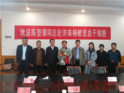 2020年10月10日的欢送会上,陈登攀老师在回答记者的提问:“2014年,我曾在曲阜中医药学校参加曲阜红十字会做造血干细胞捐献的公益宣传活动,作为曲阜市红十字会的一位培训讲师,我了解了这次活动的意义,就和我的许多同事都申请加入了中华骨髓库,成为了一名志愿者。我认为自己一点很小的付出,能挽救一个血液病患者的生命,使患者重生,这是一种功德。”