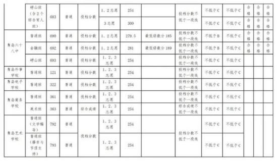 注:第一阶段其他批次录取分数线详见青岛市教育局官方网站。