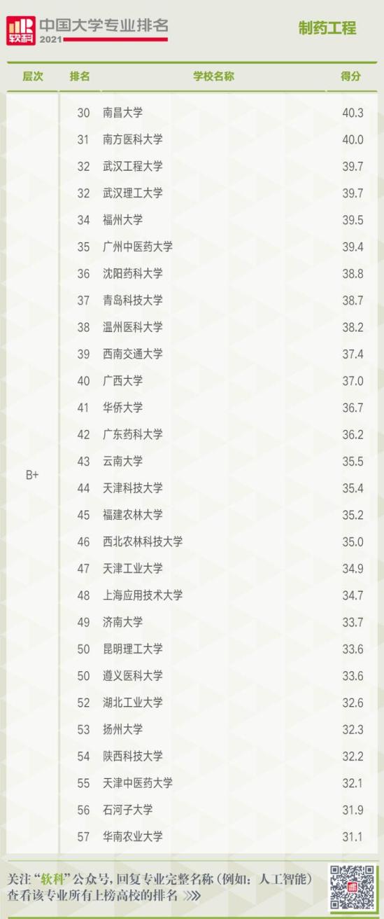 华东理工大学:制药工程专业设在药学院,是国家级特色专业、教育部特色专业、“卓越工程师计划”试点专业,入选国家级一流本科专业建设点。目标是培养既具有扎实的药学专业知识,又具有较强的工艺放大和工程设计能力,既能从事药物的研究开发,更擅长从事制药企业工程技术管理工作的高级制药工程技术人才。