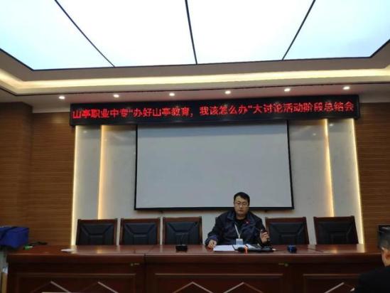 2020年12月21日,山亭区职业中专“办好山亭教育 我该怎么办”大讨论活动阶段总结会在301会议室隆重举行。全体教职工参加会议。