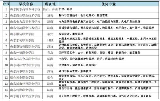 俗话说“360行,行行出状元”,现在大学生越来越多、找工作越来越难,熟练掌握一门技能有时候比学历更重要,真正能养活自己的是还是自己具备的本事和能力而不仅仅是一纸文凭,对于那些不能考进本科院校但又想继续深造的考生来说,进入职业院校接受“专业理论 实践”的教育可以帮你在就业的道路上先人一步,加上自己的努力和钻研同样能成就精彩人生。下面我整理了山东省15所比较有特色的的职业院校,以及这些院校的优势专业,这些院校虽然是专科院校但是优势专业可能会比一些普通本科院校教的更好,并且实习合作单位很多都是国企、500强企业,学好后就业不用担心。