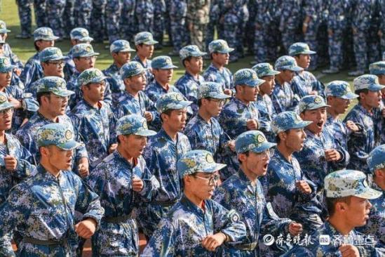 军训科目成果汇报精彩纷呈,13个连队分别进行了分列式汇报,擒敌拳方阵、匕首术方阵、战场医疗救护表演,可谓全程“高能”,13个连队齐声大合唱《没有共产党就没有新中国》,将典礼推向高潮。