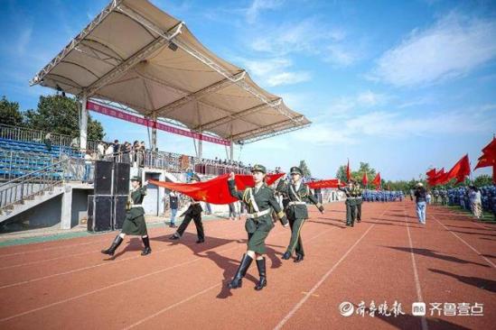 9月30日,枣庄职业(技师)学院在操场举行2021级新生军训汇报暨开学典礼。